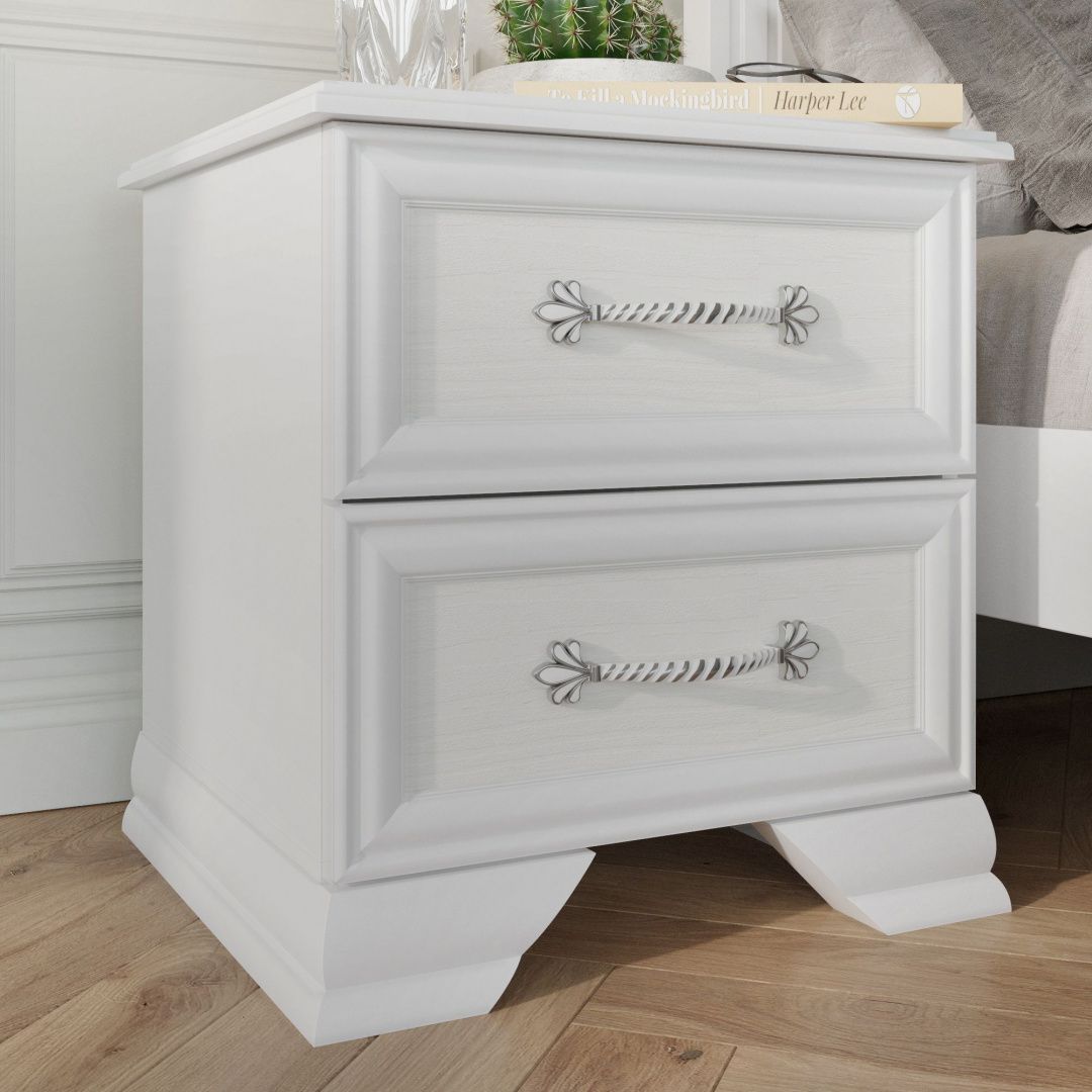 ГРАЦИЯ тумба прикроватная 2ящ.(цвет БЕЛЫЙ) (2 ЯЩИКА,ЛДСП/МДФ(рамка) цвет Белый)