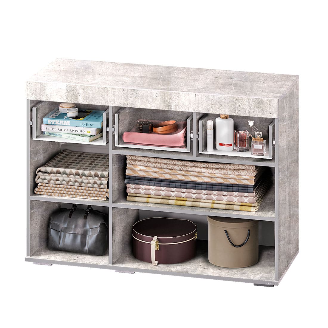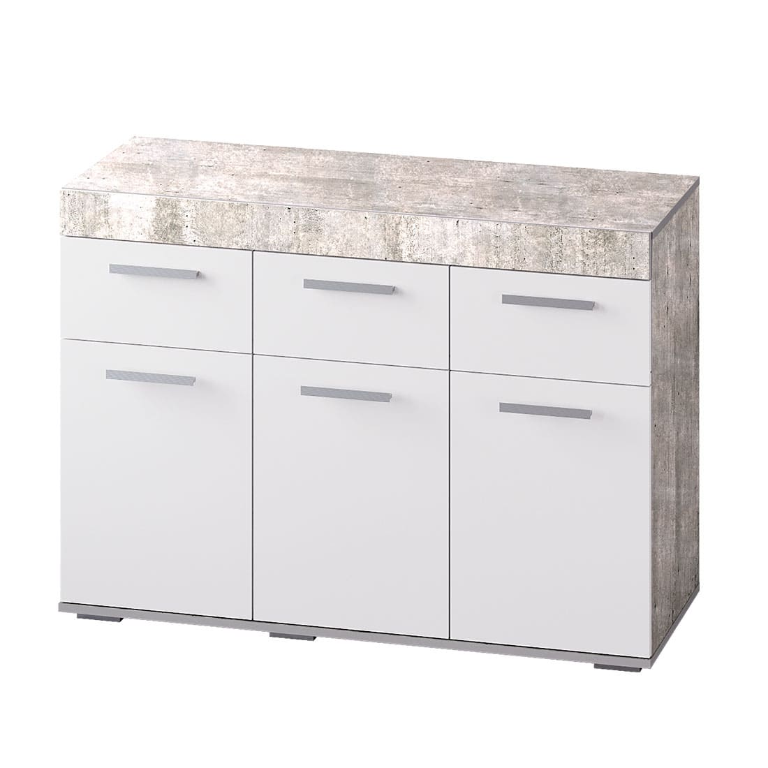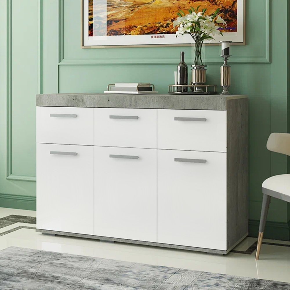 Светлые матовые фасады, стильный корпус в цвете бетон, лаконичные хромированные ручки – все это про модель комода «Инстайл» из одноимённой мебельной коллекции.