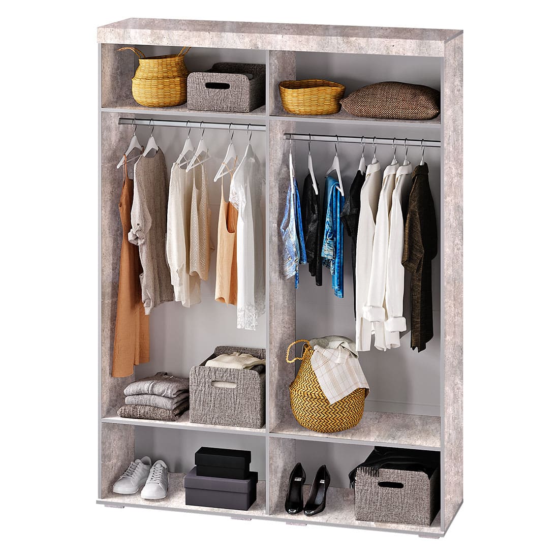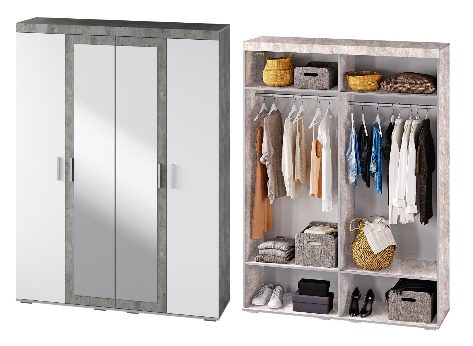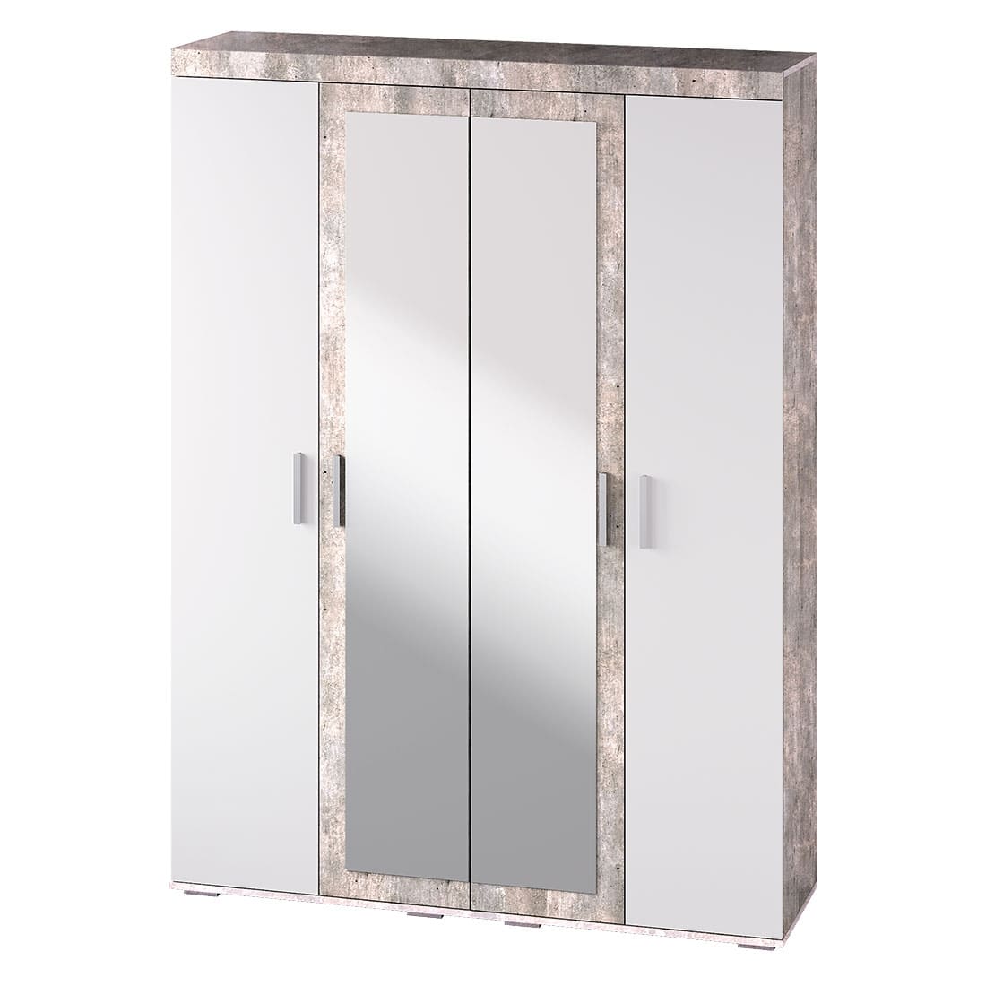 Современный четырёхстворчатый шкаф Инстайл выполнен в стиле одноименной модульной коллекции мебели. Модель состоит из четырех дверок, две из которых – зеркальные. Изделие выполнено в комбинации белого и цвета бетон. Внутреннее наполнение состоит из двух отделений со штангами, а также верхних и нижних полок для вещей. Стильный геометрические ручки украшают шкаф Инстайл. Правильный выбор по лучшей цене — это шкаф четырёхстворчатый распашной Инстайл ШК-31 в компании «Семья Мебелони».