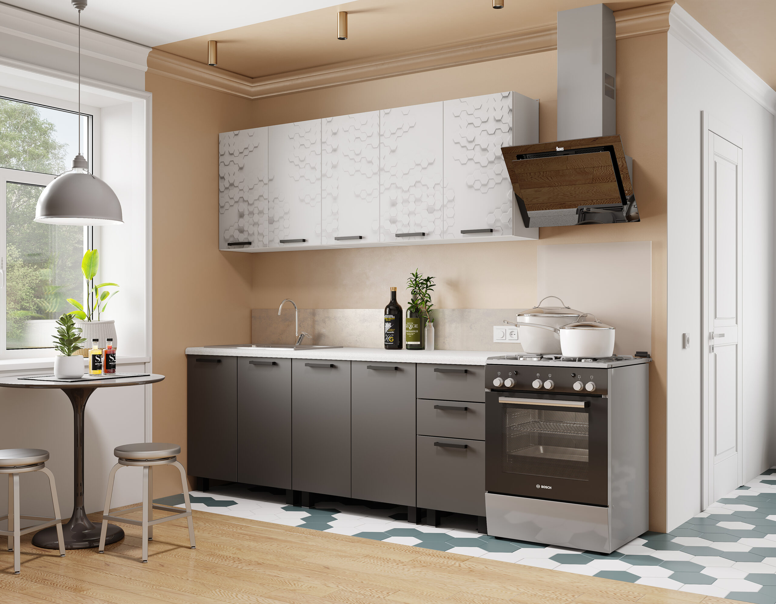 [Распродажа] Кухня «3D Техно» (МБ) Белый/F02