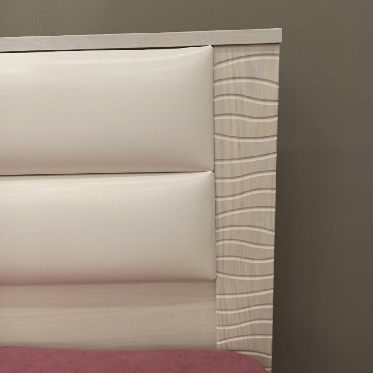 Двуспальная кровать «Монако» – это современная модель для комфортного сна и отдыха. Изделие выполнено из ЛДСП в приятном цвете ясень белый. Изголовье кровати имеет мягкие вставки и декоративную отделку.