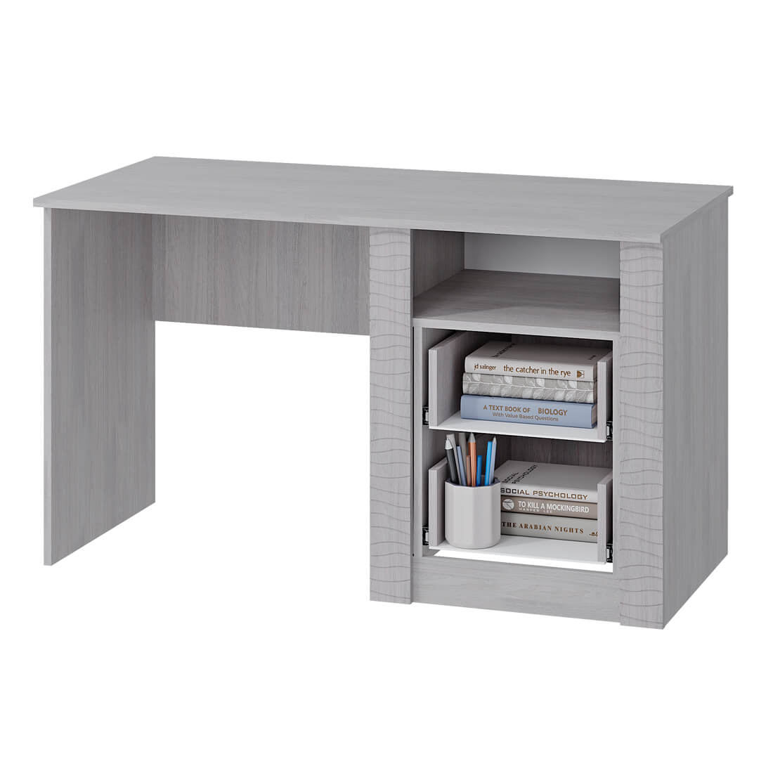 Стильный письменный стол Монако станет любимым местом для работы или учебы. Модель выполнена из высококачественной ЛДСП в цвеет ясень белый. Фасады встроенной тумбы имеют отделку из МДФ. Помимо вместительной столешницы, в столе есть два выдвижных ящика и открытая ниша для хранения всех необходимых вещей. Высокое качество по доступной цене – это письменный стол Монако ПС-06 в компании «Семья Мебелони».