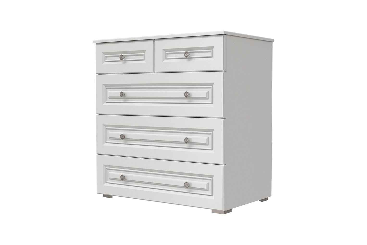 ОЛИПМ (ЛАК-БЕЛЫЙ) комод 5 ящиков ( 5 ЯЩИКОВ. ЛДСП/ МДФ(лак) Белый/Белый)
