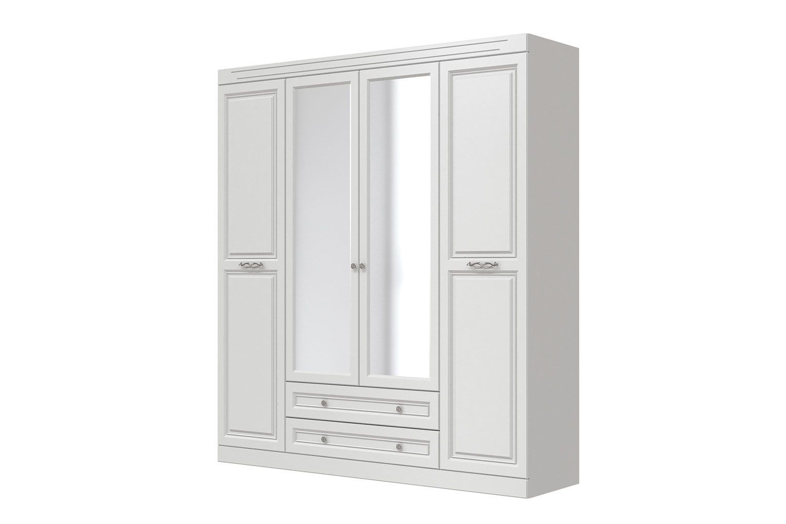 ОЛИПМ (ЛАК-БЕЛЫЙ) шкаф для одежды ШР-4 (2 зеркала,ЛДСП/ МДФ(лак) Белый/Белый)