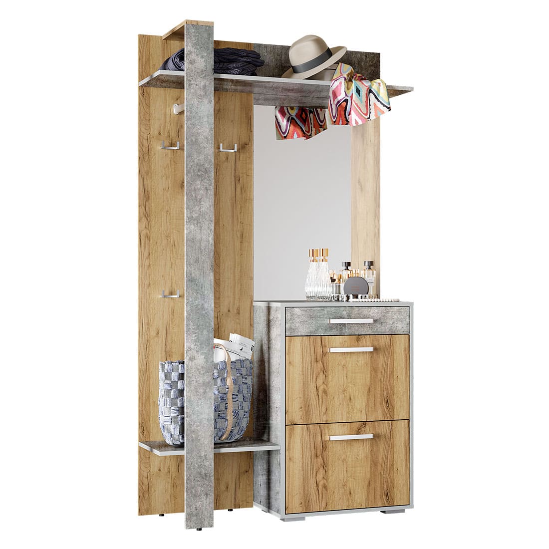 Благодаря Прихожей «Кензо» можно организовать удобную и продуманную систему хранения даже в небольшом помещении. На открытой панели со штангой, крючками и полками найдется место для верхней одежды, сумок, шарфов и зонтов. Для обуви предусмотрены выдвижные ящики. Ключи и прочие мелочи удобно держать на небольшом столике выше. Поправить прическу, головной убор или одежду можно благодаря навесному зеркалу, которое, к тому же, визуально расширяет пространство. Практичное решение по лучшей цене — это прихожая Кензо в компании «Семья Мебелони».