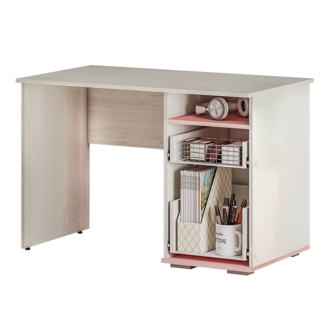 сложить все необходимые для учебы и творчества предметы можно в два выдвижных ящика и в открытую нишу над ними.
