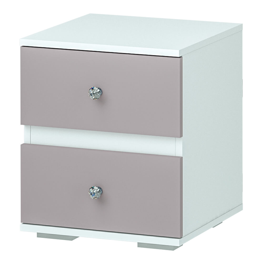 модель состоит из двух выдвижных ящиков, украшенных изящными ручками в виде хрусталя,