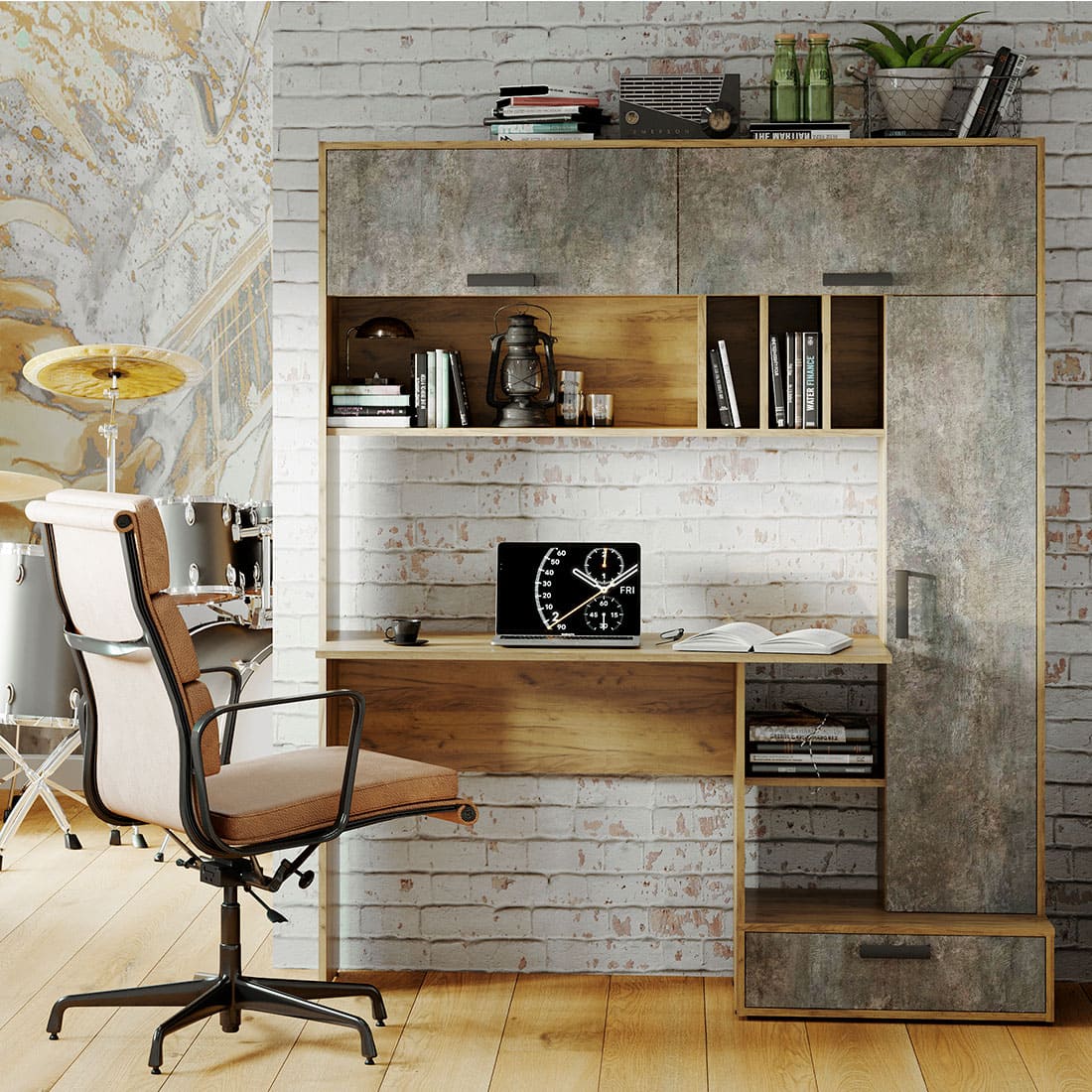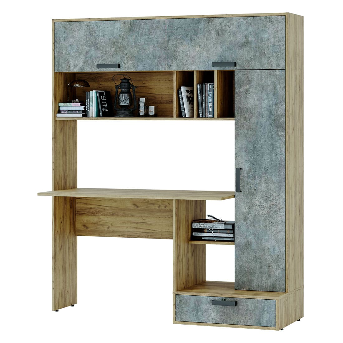 Письменный стол Техно – не просто стол, это готовое решение для организации рабочего пространства. В комплектацию входит столешница, верхние и боковые ниши, спрятанные за дверцы, нижний выдвижной ящик и открытые полки. Разместить необходимые предметы, включая технику, не составит труда. Цветовое решение позволит модели вписаться в современный интерьер, особенно в стиле лофт. Высокое качество по доступной цене – это письменный стол Техно в компании «Семья Мебелони».